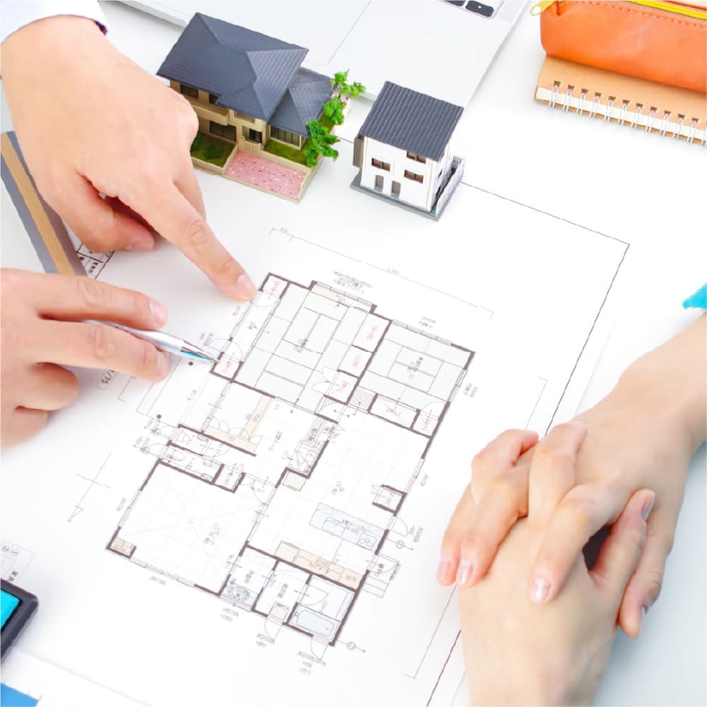 どんな暮らしをしたいか、どんなこだわりがあるか、将来のことも含めて、じっくり聞かせていただきます。そして、納得していただけるまで、何度でも最適なプランをご提案いたします!